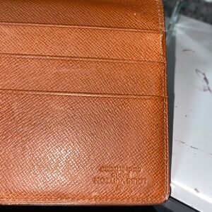 Authentic Louis Vuitton Monogram checkbook holder in preowned condition with signs of wear may including tear repair imperfections,peeling and fading. Bill compartment, receipt/checkbook holder. Will fit most cell phones.