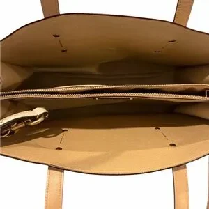• Tan signature print with bold rose floral design