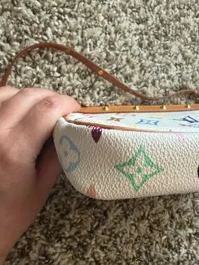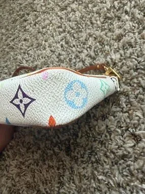 Louis Vuitton Multicolor Monogram White Mini Pochette with Tan Trim