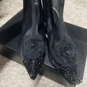 Chanel Camelia Black Swarovski Mesh Pointed Booties 38