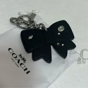 COACH Bow Bag Charm Gem Ribbon Black Leather