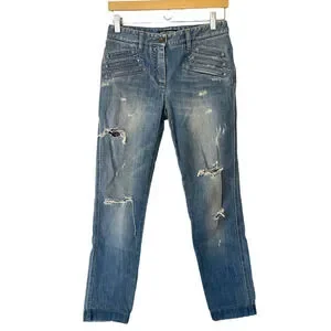 Dolce & Gabbana Distressed Medium Wash Straight Leg Jeans • Size 40 🔴