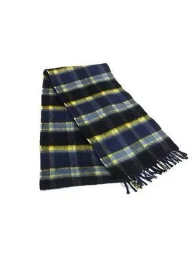 Prada Scarf Navy Yellow Cashmere Plaid Fringe