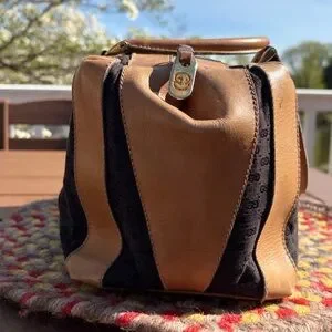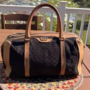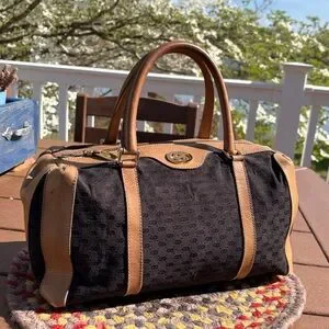 Vintage GUCCI Boston 28 monogram canvas in black with leather details.