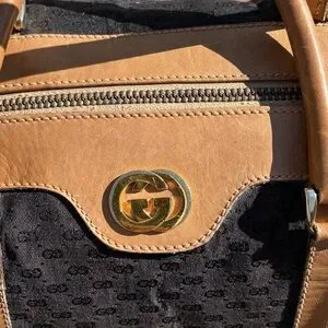 Vintage Gucci Micro GG Canvas Boston Bag Size 28 Black Tan Made in Italy
