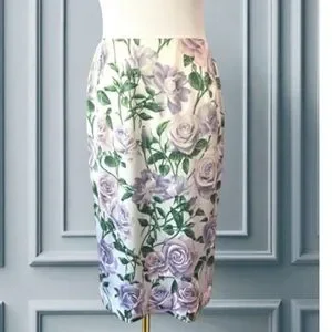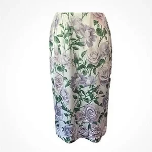 DOLCE & GABBANA SILK STRETCH ROSE FLORAL PENCIL SKIRT SIZE 44