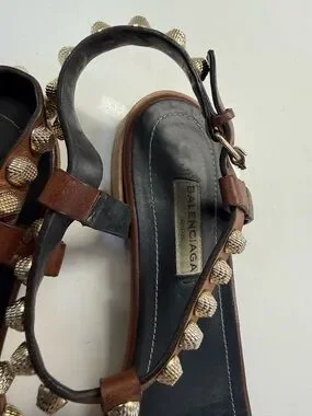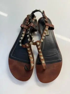 Balenciaga Brown Studded T-Strap Sandals - Women