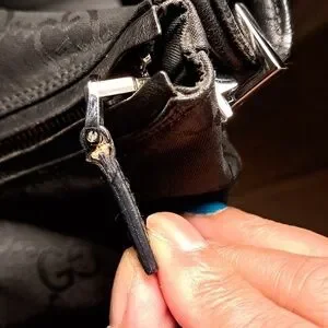 Slight wear on the right side loop of leather handle where it goes through Gucci hardware (see picture)