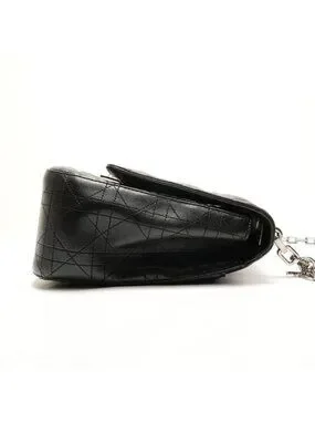 This is an authentic Dior Cannage Leather New Rock Chain Shoulder Bag in black. The bag features the iconic Cannage quilted leather pattern, a silver-tone chain strap, and a front lock closure.