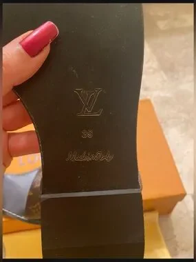 Louis Vuitton Brown Monogram and Black Studded Ankle-Strap Sandals with box