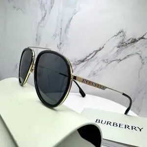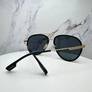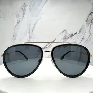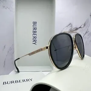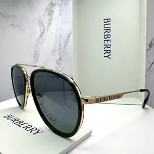 New Burberry Sunglasses Polarized Gold Black Check Arms Aviator Pilot Metal