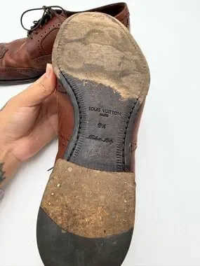 Louis Vuitton Dress Shoes Mens 9.5 Brown Leather Brogue Italy Lace Up