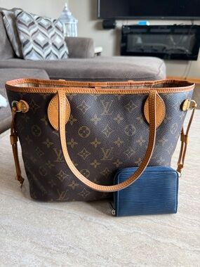 LV Neverfull PM Monogram Canvas and blue epi wallet