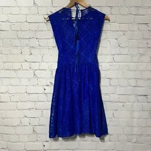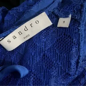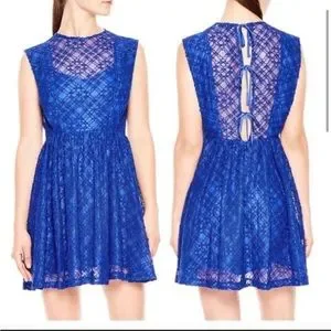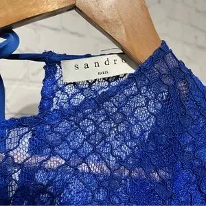 Sandro Paris Mikka Lace Dress Blue Tie Back Mini Fit & Flare Party Cocktail