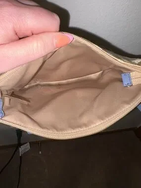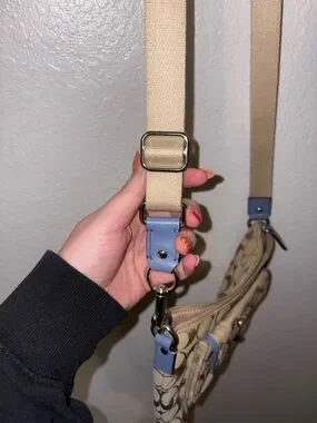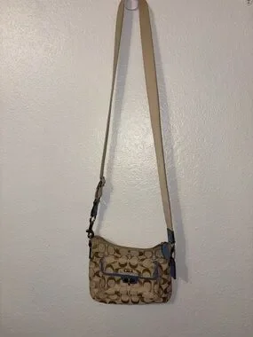 Coach Tan Signature Canvas Crossbody with Blue Trim
