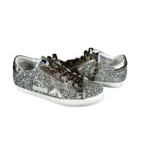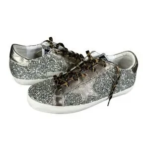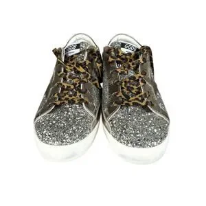 Golden Goose Superstar Glitter Star Sneakers Leopard Laces Italy US 10
