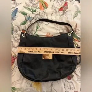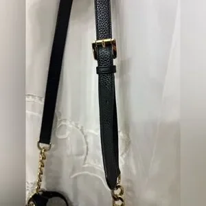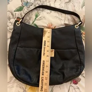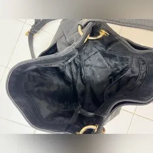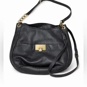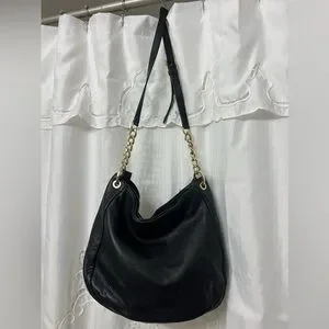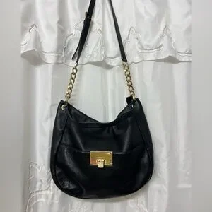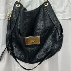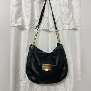 Michael Kors Bedford Large Black Pebbled Leather Shoulder Bag Gold Chain Hobo