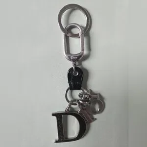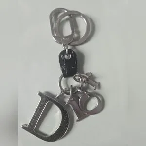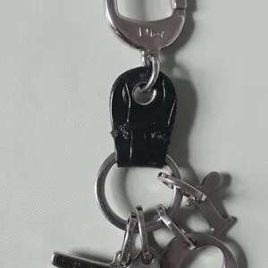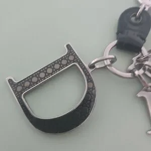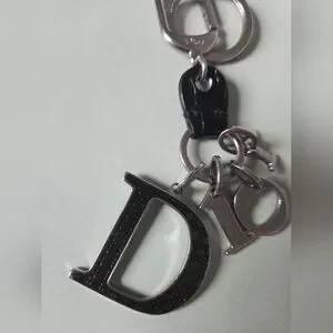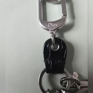 Dior bag charm and key holder, featuring a sleek black and silver colorway with refined leather detailing. Unlike many listings for beauty or novelty items dior key chains and charms, this is an authentic original Dior accessory—crafted with quality and intention.