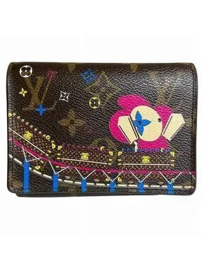 This is an authentic Louis Vuitton Monogram Portefeuille Victorine Trifold Wallet in brown. The wallet features the iconic Louis Vuitton monogram canvas material with vibrant pops of color and whimsical printed designs decorating the surface.