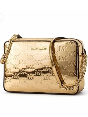 Michael Kors JetSet Crossbody in logo Gold Patent