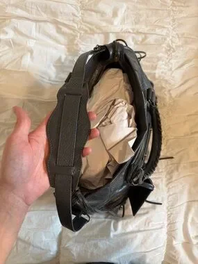 Balenciaga ANTHRACITE Grey City Bag . Dual top handles and a detachable matching mirror. Front zip pocket and signature hardware accents. Soft structured silhouette for daily use.