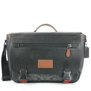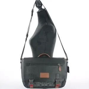 Coach Signature Messenger Bag Gray Black Canvas Leather Crossbody