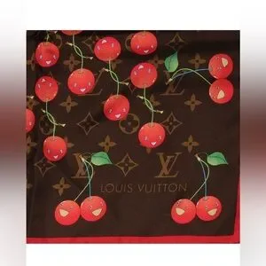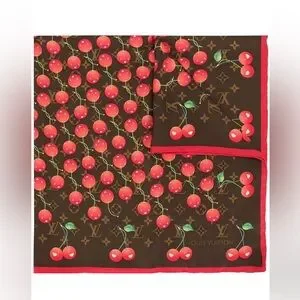 Louis Vuitton x Takashi Murakami Cherry Monogram Silk Scarf rare collectible
