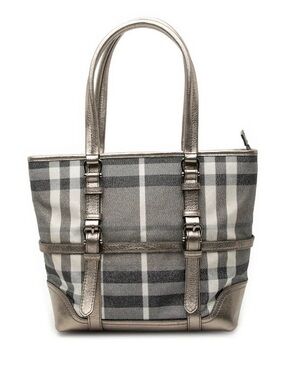 Very good used condition Women’s Burberry Silver Shimmer Check Degrade Buckle Tote Bag
