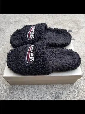 Balenciaga Black (all sizes) Sherpa Logo Slide Sandals