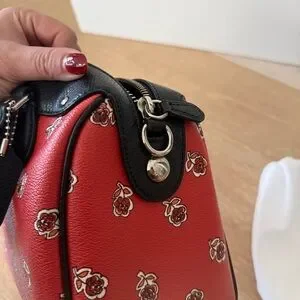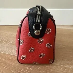 NWOT Coach mini Bennett satchel Boston bag black leather red rose sienna floral