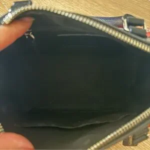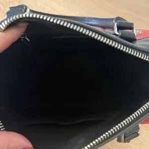 Comes with removable adjustable leather crossbody strap and dust bag (minor stain on dust bag, see photos)
