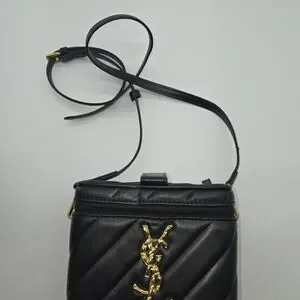 Elevate your style with the black leather travel bag. Perfect for any occasion, this sleek and sophisticated accessory combines luxury with functionality. Includes 2 different straps. Brand New. Never been worn. This was created by a Third party vendor for YSL to be gifted to their beauty customers.