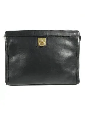 This is an authentic Celine clutch in black leather. The clutch features the brand's signature logo hardware and a sleek, minimalist design.