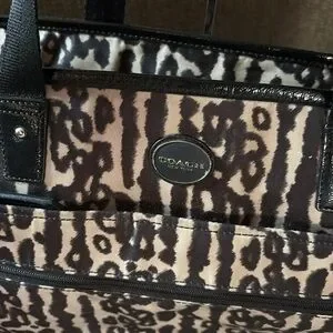 Gently Loved Coach Large Getaway Ocelot Print Nylon Diaper /Weekender Tote Bag