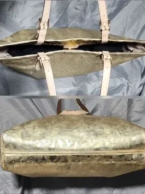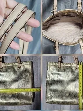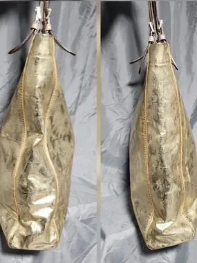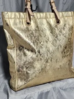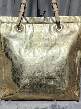 Michael Kors Pale Gold Metallic Jet Set Logo Embossed Tote Bag Shoulderbag Purse
