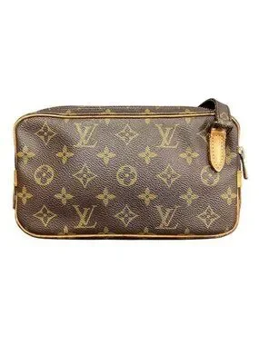 This is an authentic Louis Vuitton Monogram Marly Bandouliere shoulder bag in brown. The bag features the brand's iconic monogram canvas material, gold-tone hardware, and an adjustable shoulder strap for versatile wear.