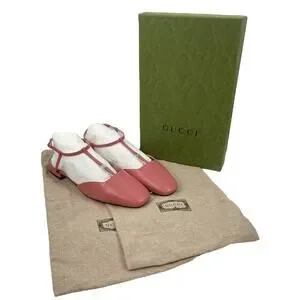 Gucci Double GG T Strap Patent Leather Ballet Flat Pink Size 39.5