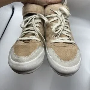 For all your urban needs, Isabell Marant Etoile gives us the BESSY hip-hop sneaker. You will love the fresh color and the contrast between the smooth leather and the soft suede. In a beautiful blush and cream color. Lace up and Velcro closure. In great preowned condition with a little wear to the Leather on the very front and back of the sneaker (shown in last 2 picture). Size 40 which is a US 10. Comes from a smoke free home. Retail cost $580.