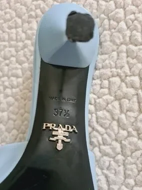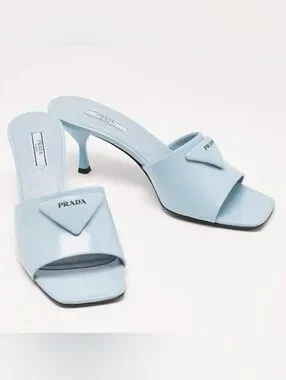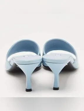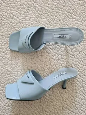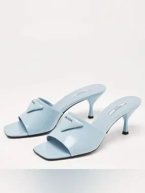 PRADA Burnished Leather Heeled Slide Sandals In Celeste EU 37.5 US 7.5 Org $1295