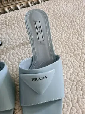 Wear these designer sandals to spruce up any outfit. They are versatile, chic, and can be easily styled. Crafted of burnished calfskin leather and finished with a puffytake on Prada's iconic triangle logo.