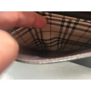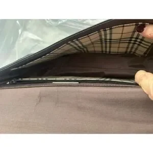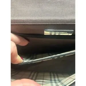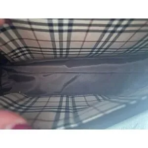 Keywords: Burberry bag, leather handbag, designer purse, plaid lining, classic style, luxury accessory, women's fashion, shoulder carry, flap bag, iconic print, textured leather, chic