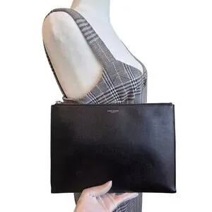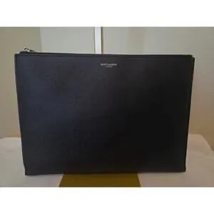 Saint Laurent YSL Black Leather Zip Pouch Clutch Grain de Poudre Caviar Leather