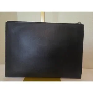 Pre-owned. Exterior leather is clean, no stains. Corners show minor scuffing. Interior shows light signs of wear. Zipper works smoothly.