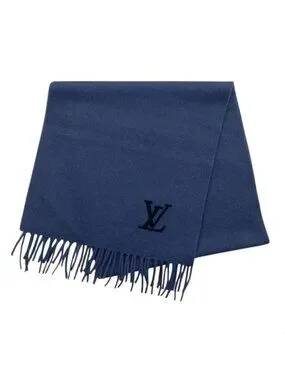 Louis Vuitton Scarf Echarpe Jeram Cashmere Logo Navy Blue