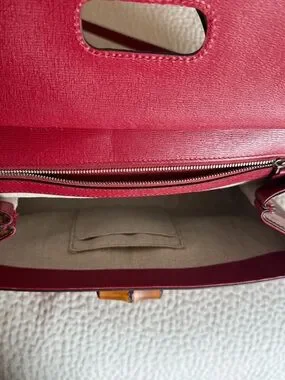 Gucci Floral Red Top Handle Satchel with Bamboo Accent