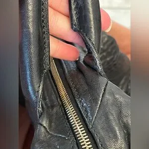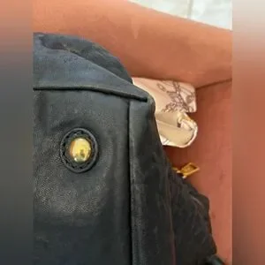 This is an absolutely gorgeous bag. The only callout is some tiny little threads at the bottom of the handles. Shown in photos. Comes with tags. 18x11.
