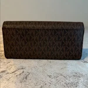 Michael Kors Brown Signature MK Continental Wallet with Gold Logo