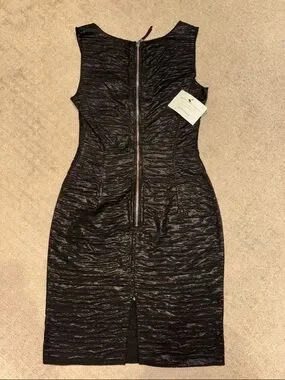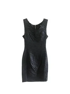 Beautiful LBD. Fitted sheath dress by Dolce & Gabbana. Sleeveless with a rounded neckline. Horizontal textured fabric adds subtle sheen. Sleek and elegant.