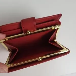 NIB COACH Vintage 4886 Continental Clutch Wallet Red Leather Kiss Lock Framed