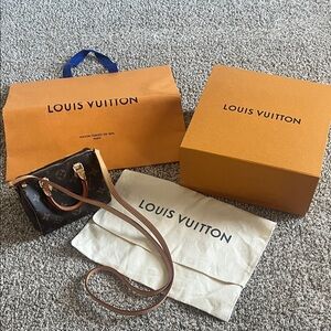 Compact Louis Vuitton monogram mini crossbody. Brown coated canvas with natural leather trim. straps are not removable. Gold hardware accents. Iconic LV pattern for polished style. Discontinued. 100% authentic. Very good condition. Barely used!